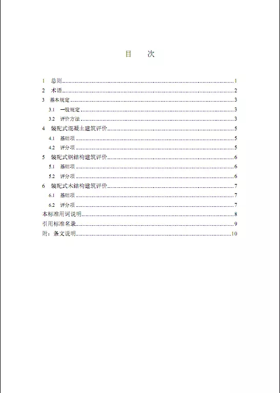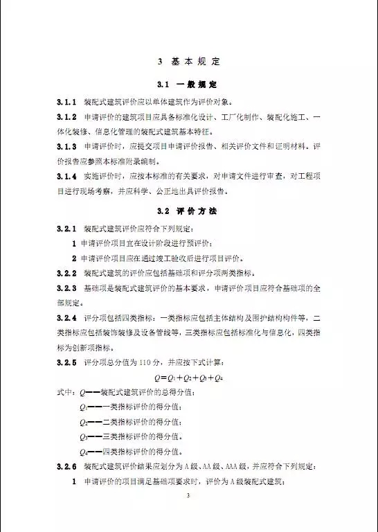 该文件主要明确了对混凝土结构、钢结构、木结构三类装配式建筑的评价规定、评价指标、评价要求、以及评价结果: